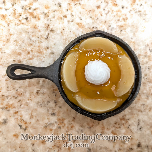 Discover our unique collection of dessert-inspired candles, each crafted in an authentic Lodge cast iron mini skillet that becomes yours to keep! These distinctive candles combine our custom soy and gel wax blend to create deliciously realistic dessert scenes, complete with detailed fruit decorations and dollops of whipped cream. But the real treasure is the premium 5-inch Lodge cast iron skillet itself – a versatile, pre-seasoned cooking vessel that will last for generations once the candle is spent.