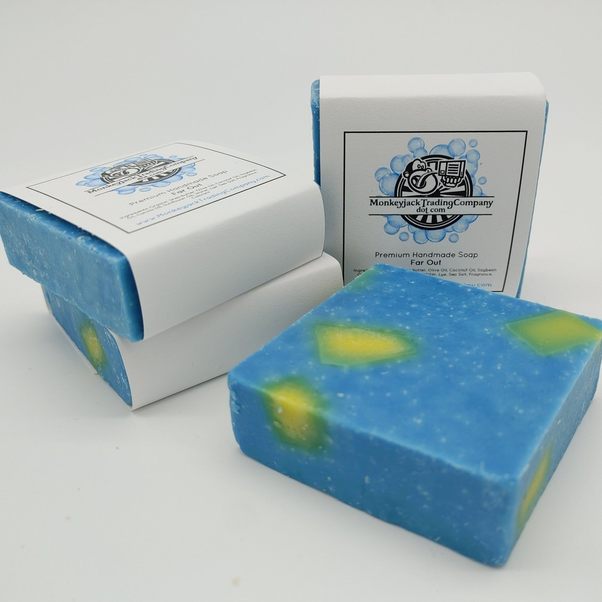 Get ready to blast off into a new realm of clean with our Far Out Cold Process Soap Bar! This 5-ounce bar of spacey goodness will leave you feeling like a cosmic explorer, ready to conquer any planet (or dirt and grime) that comes your way.