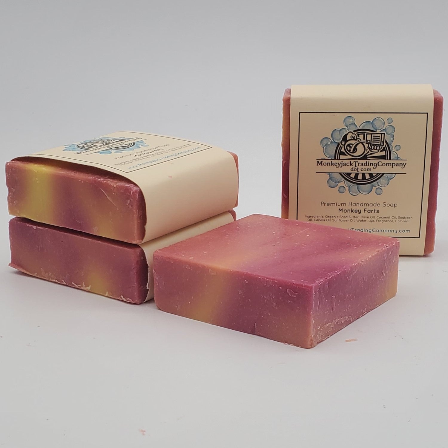Do you want to be the talk of the town? Do you want your bathroom to be the go-to destination for anyone looking for a good laugh and an even better scent? Then you need the Monkey Farts Cold Process Soap Bar. This 5-ounce bar packs a fruity punch with its irresistible blend of banana, grapefruit, kiwi, and strawberries. Trust us, this soap smells nothing like the name implies! It's a delightful tropical blend that'll make you feel like you're on a beach vacation in the comfort of your own bathroom.