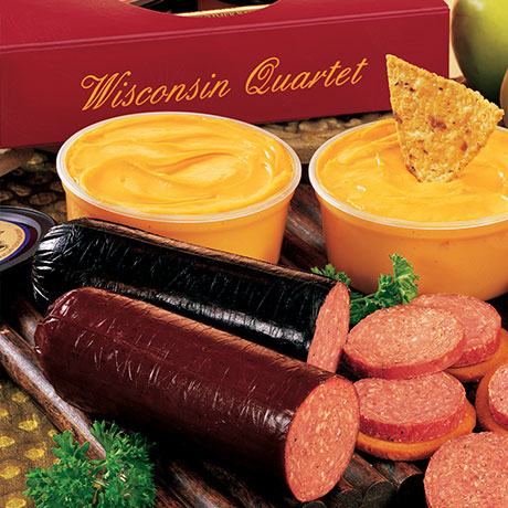 Get ready to satisfy your taste buds with our perfect gift box! Our popular pasteurized Wisconsin Cheese Snack Spreads are paired with two delicious varieties of summer sausage, all bundled up in a handsome red box, making it a gift-giving favorite.